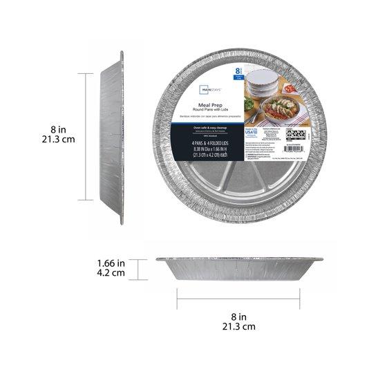 - Add convenience and performance to your kitchen pantry with the Mainstays Round Aluminum Cake Pan with folded lids. Each package includes 4 pans and 4 folded lids. Item number 92446MS-8.