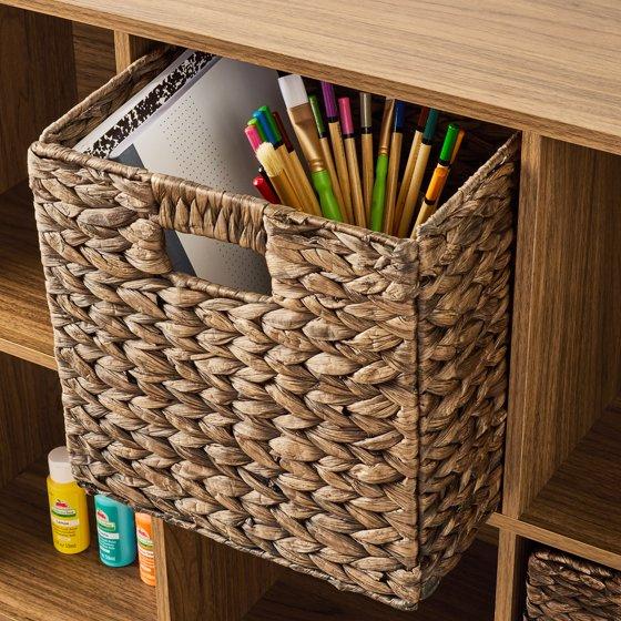 The Mainstays 9 Cube Storage Organizer features nine compartments perfectly sized for storing and displaying office supplies, books, clothes, craft supplies, photos, collectibles and so much more! Compatible with Mainstays 10.5" x 10.5" collapsible storage bins (sold separately) and available in multiple finishes. Four open-back cube shelves make managing cords and cables easy, while five closed-back shelves help keep items securely housed. Add a multifunction accent piece to your living room, family room, home office, playroom, closet and more, with the Mainstays 9 Cube Organizer.