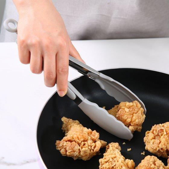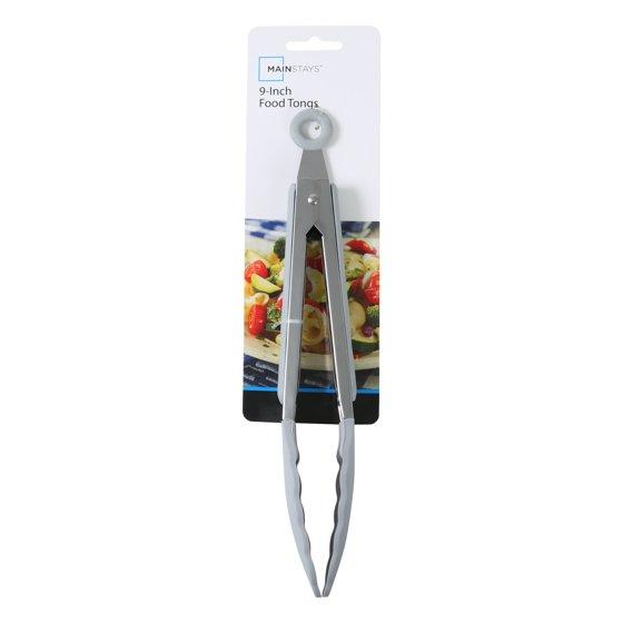 Mainstays 9" Stainless Steel and Silicone Locking Tongs, Soft Grip Handle, Grey Flannel