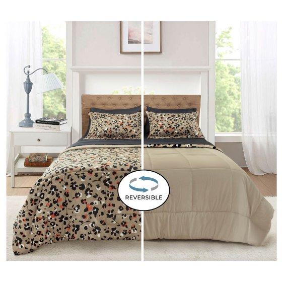 - Mainstays 7 Piece Reversible Bed in a Bag Comforter Set with Sheets, Beige/Tan Animal Print, Full