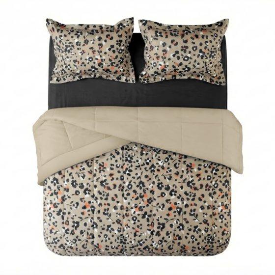 Mainstays All in One Reversible Comforter and Sheet set- 7 Piece, Full, Beige Animal Print