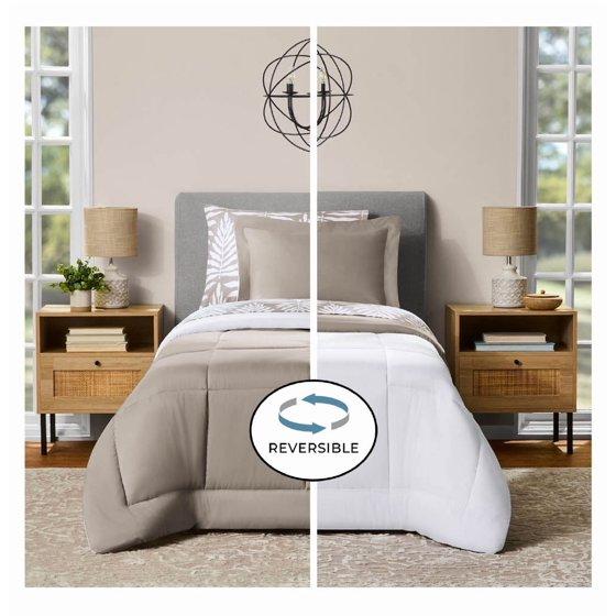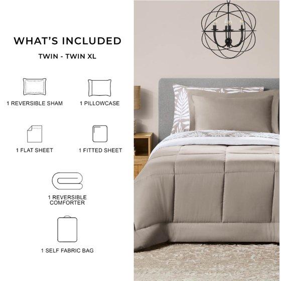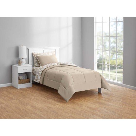 - Mainstays 5 Piece Reversible Bed in a Bag Comforter Set with Sheets, Beige Palm, Twin-XL