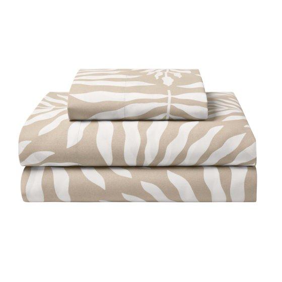 - STYLISH BEDDING DESIGN: Solid Beige on one side and a solid white on the other. Beige Palm Leaf Sheets