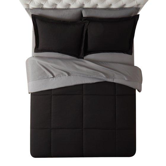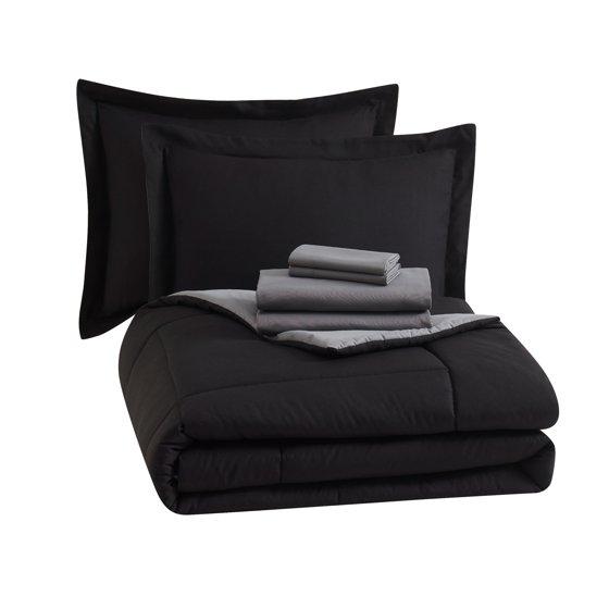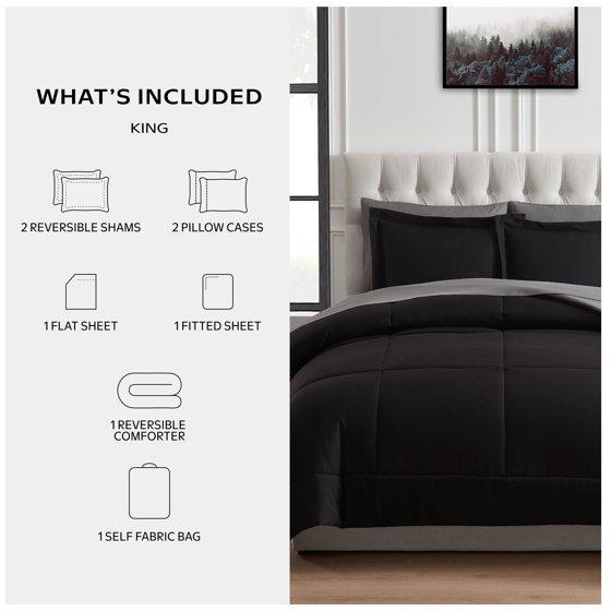 Mainstays All in One Reversible Comforter and Sheet set- 7 Piece, King, Black
