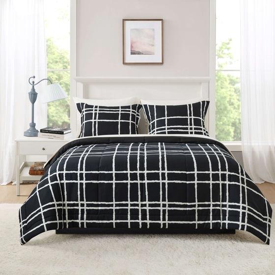 Mainstays All in One Reversible Comforter and Sheet set- 7 Piece, King, Black and White Checker