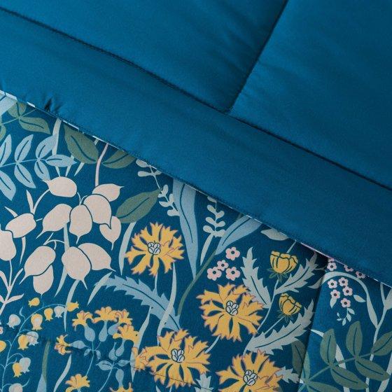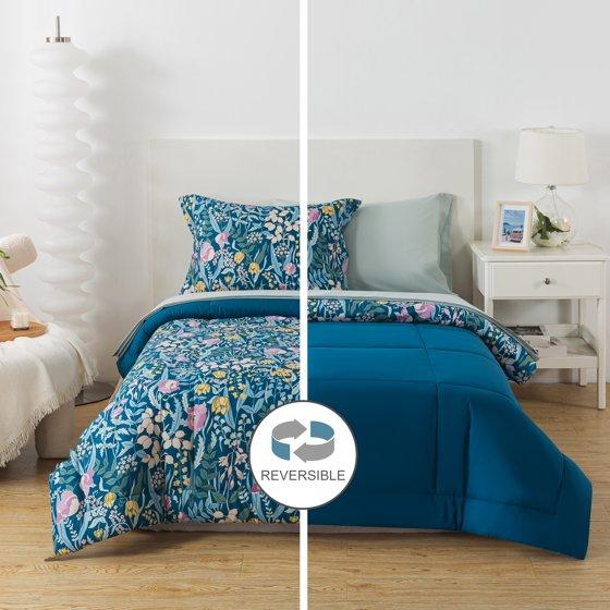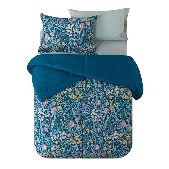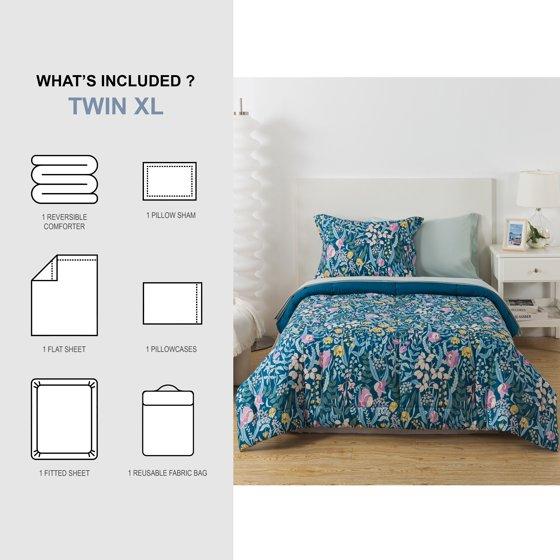 Mainstays All in One Reversible Comforter and Sheet set- 5 Piece, Twin, Blue Floral