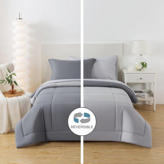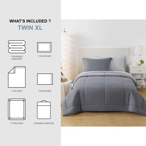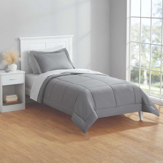 Mainstays All in One Reversible Comforter and Sheet set- 5 Piece, Twin, Gray