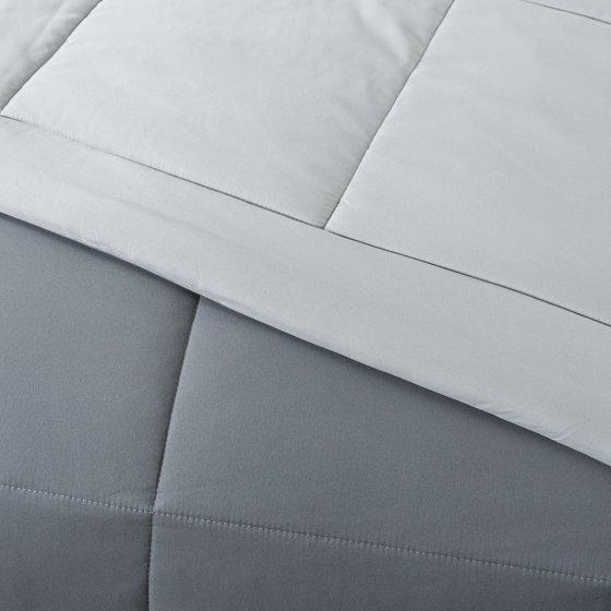 - STYLISH BEDDING DESIGN: Comforter is solid silver on one side and solid matching lighter gray on the other, with a complementing printed gray stripe sheet set