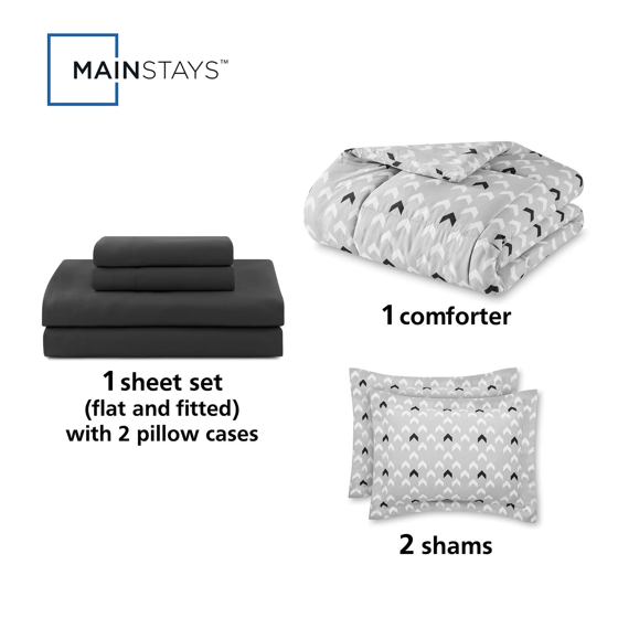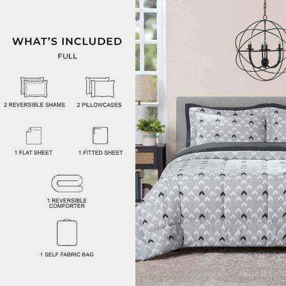- Mainstays 7 Piece Reversible Bed in a Bag Comforter Set with Sheets, Soft Silver Chevron, Full, Adult, Unisex