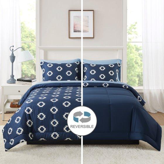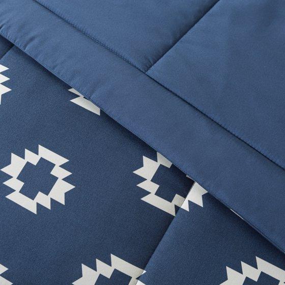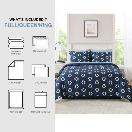 Mainstays All in One Reversible Comforter and Sheet set- 7 Piece, Full, Navy Geo