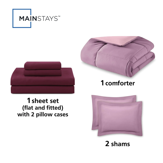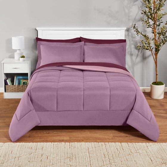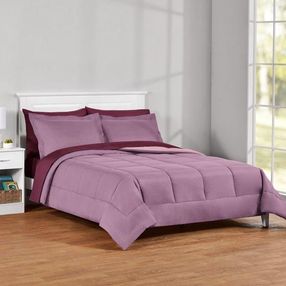 Mainstays All in One Reversible Comforter and Sheet Set- 5 Piece, Twin, Purple