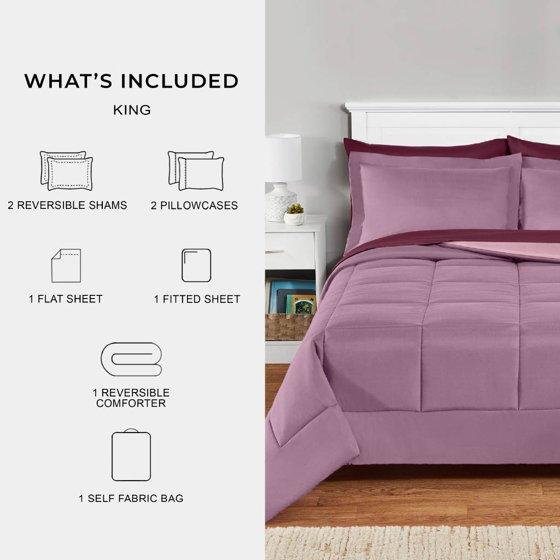 - Mainstays 7-Piece Reversible Lilac Bloom Bed in a Bag Comforter Set with Sheets, King, Adult, Unisex