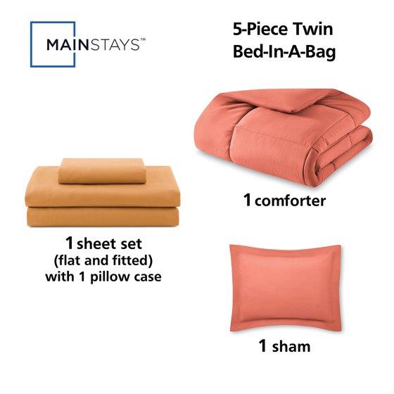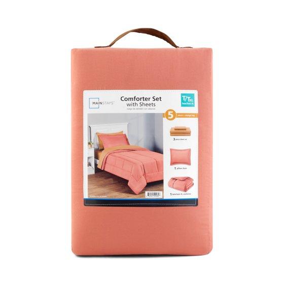 - Mainstays 5-Piece Reversible Red Canyon Bed in a Bag Comforter Set with Sheets, Twin-XL, Adult, Unisex