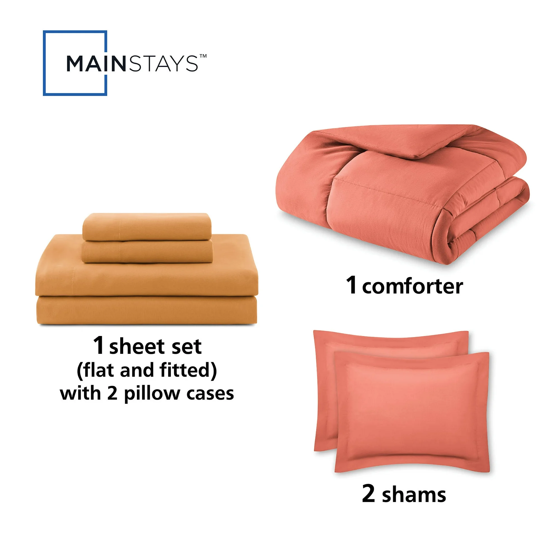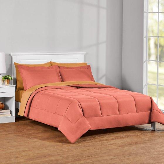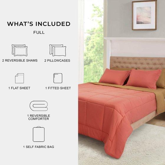Mainstays All in One Reversible Comforter and Sheet set- 7 Piece, Full, Red Canyon