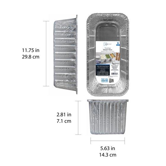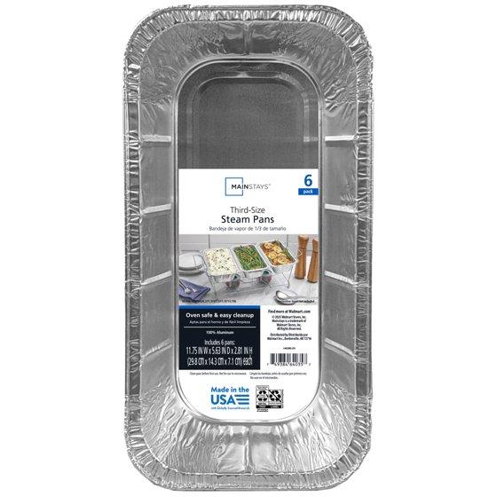 - Mainstays Aluminum 1/3 Steam Table Pan, 6 Count, 12.63" x 6.5" is perfect for meals
