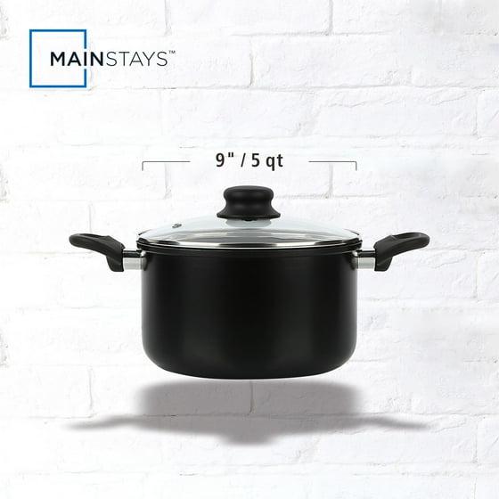 - Mainstays Aluminum Black Non-stick Coated 5QT Dutch Oven with Glass Lid