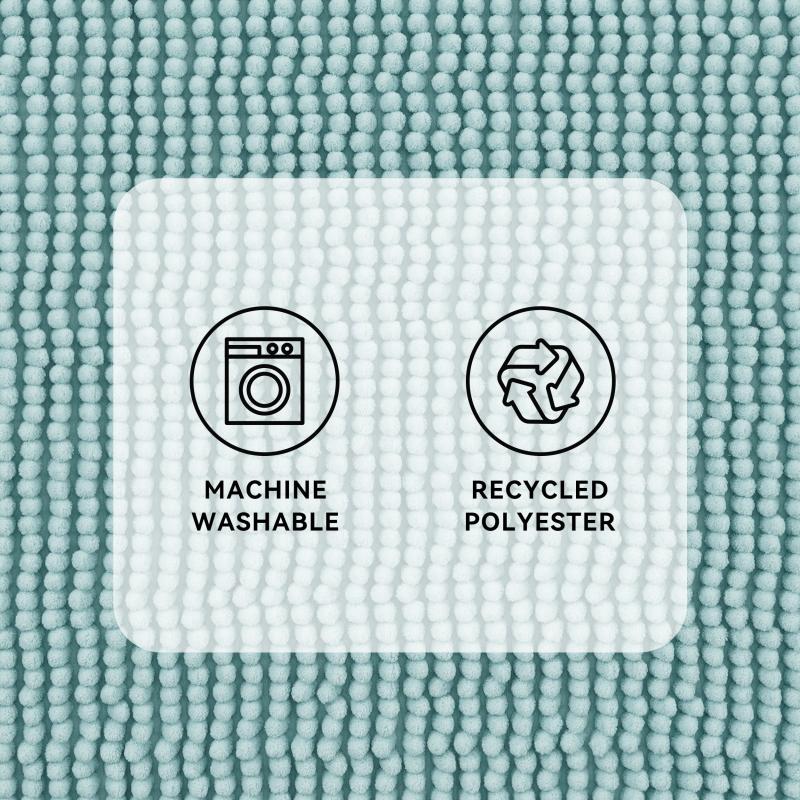 Refresh your bathroom with classic, casual style and step into ultra-soft comfort with the Mainstays Basic Polyester Chenille Noodle Bath Rug, 17" x 24" two pack. This rectangular bath rugs are designed in a solid color pattern with 8 colors to choose from. Mix and match with Mainstays Basic towels—sold separately—in the same colors for a beautifully coordinated bathroom. The bath mat is crafted in 50% recycled polyester and 50% virgin polyester for advanced air circulation and exceptional absorbency. Machine wash and dry for easy care. The Mainstays Basic Bath Rug is an essential bathroom accessory.