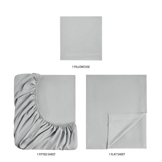 - Twin Bed Sheet Set includes 1 flat sheet, 1 fitted sheet and 1 pillowcase