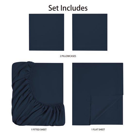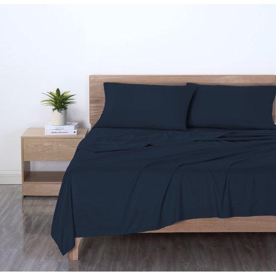 Mainstays Basic Value Microfiber Bed Sheet Set, Navy Blue, Full, 4 Piece
