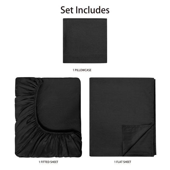 Mainstays Basic Value Microfiber Bed Sheet Set, Rich Black, Twin, 3 Piece
