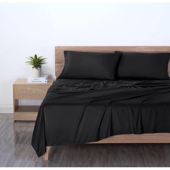 Mainstays Basic Value Microfiber Bed Sheet Set, Rich Black, Queen, 4 Piece
