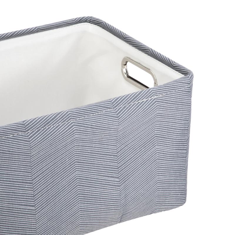 Mainstays Gray Herringbone Canvas Fabric Decorative Storage Basket with Handles, 15 in x 8 in x 11 in