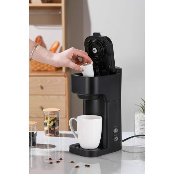 Mainstays Black Matte Dual Brew Coffee Maker, Single Serve, Auto Shutoff, 14 oz Reservoir