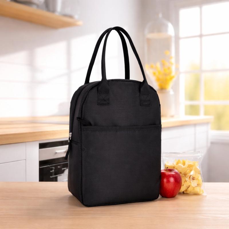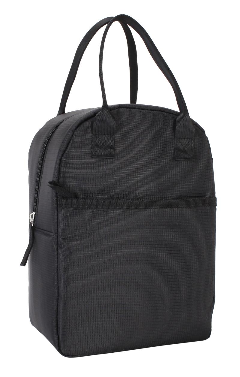 Mainstays Black Reusable Rounded Polyester Lunch Bag with Zippered Main Pocket and Front Pocket, Ideal Use for School, Workday Meals and Travel
