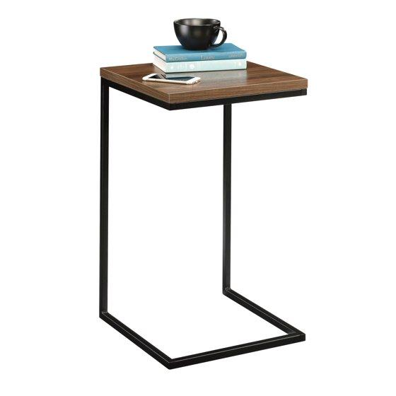 Short on space but need a place to set your refreshing ice-cold beverage? We've got just the piece for you! Take up a fraction of the space in your home while providing the convenient table top space that you need with this side C table from the Mainstays collection. This one-of-a-kind side table offers a space saving, sleek design for use in any room of your home. Its durable, 1? thick top surface provides you with the perfect amount of space for all your couch side needs like a place to set the TV remote, your reading glasses, that tough crossword puzzle, and of course your coffee mug too. This C table is constructed with a black powder coated metal frame that gives it a modern touch of style that is sure to stand out in your home. It's finished on all sides so it'll look the part no matter where it stands. Finished in Canyon Walnut, this handy side C table is just what your home is missing.
