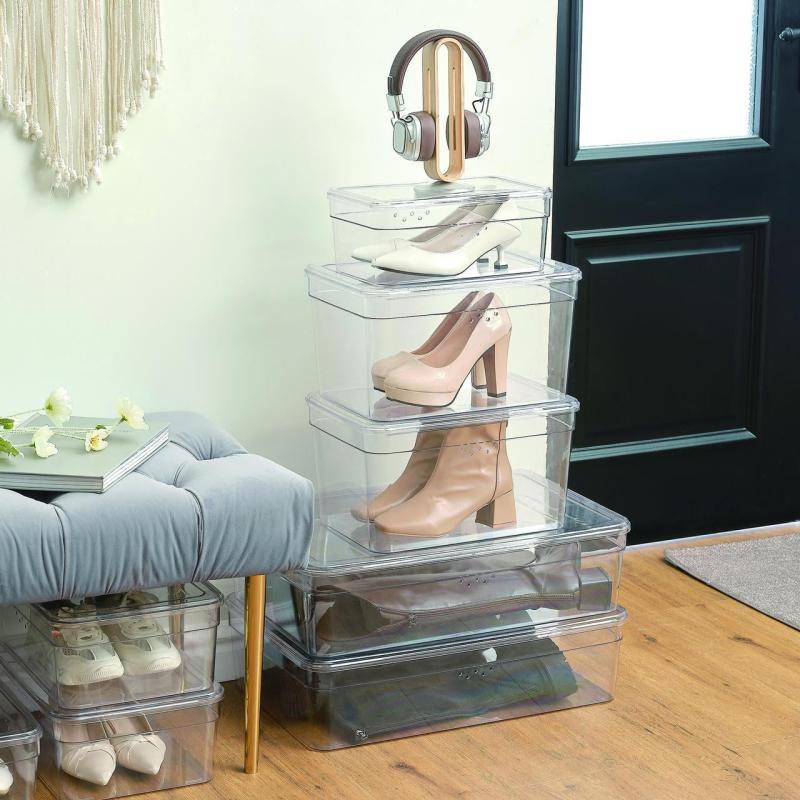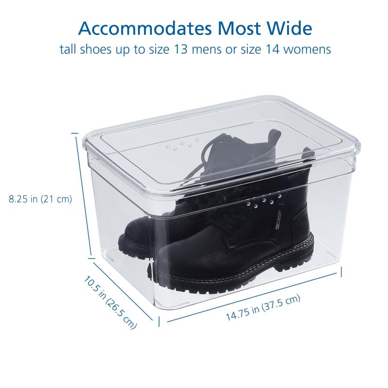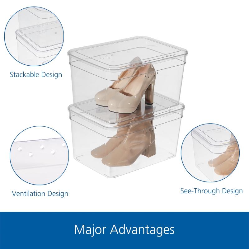 (2 pack) Mainstays Clear Glossy Plastic Extra Tall Closet Storage Shoe Organizer Shoe Box with Lid for Shoe Storage