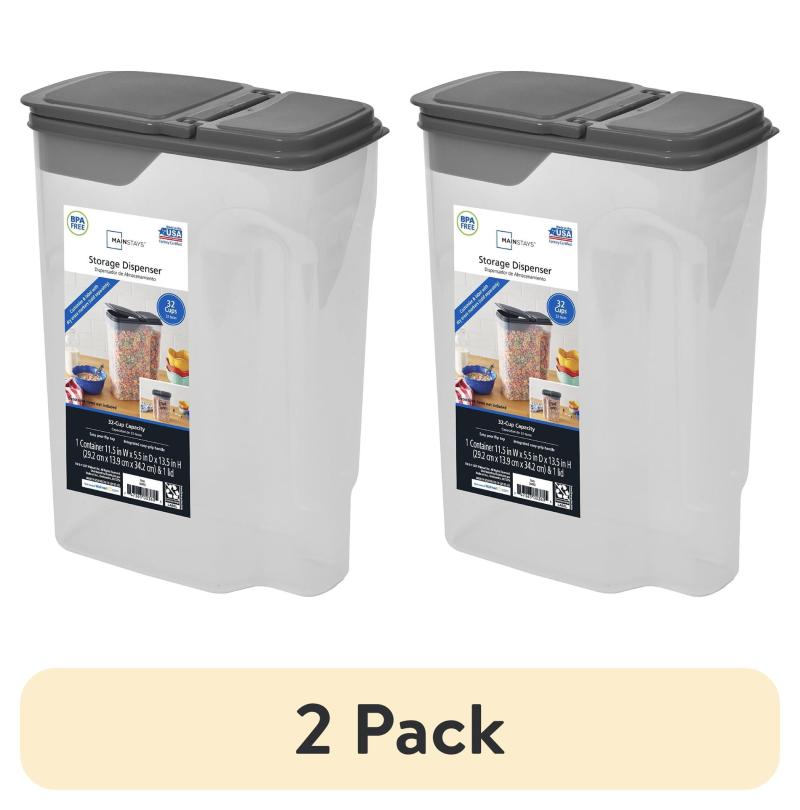 (2 pack) Mainstays Clear Plastic Cereal Dispenser with Lid, 32 Cup Airtight Cereal Storage Container for Pantry Organization and Dry Food Storage, 9.75" x 5.38" x 13.5"