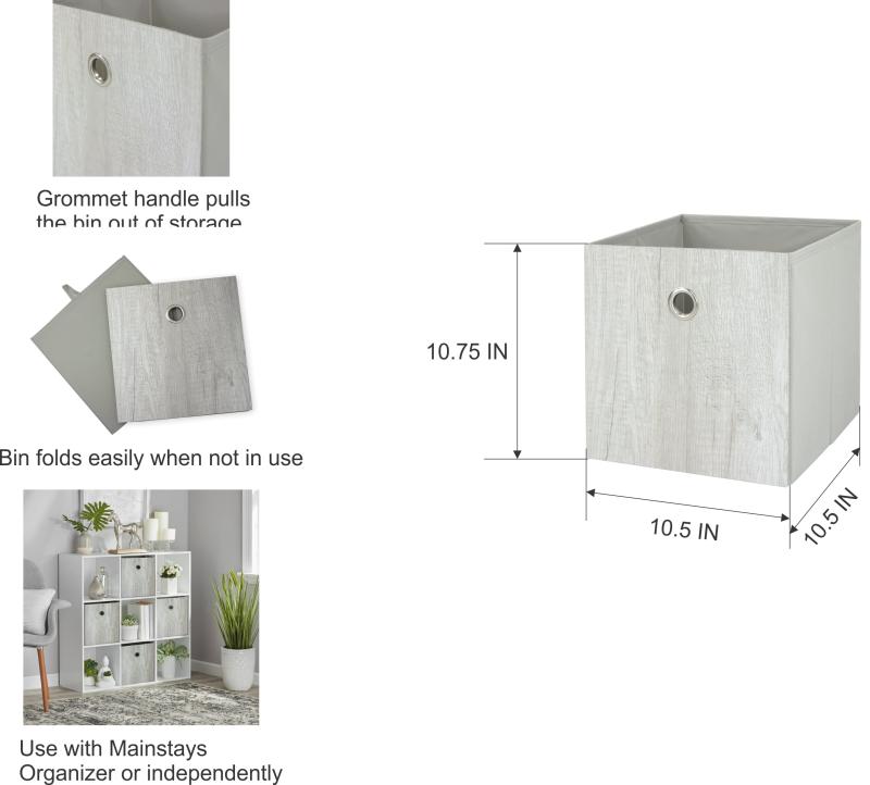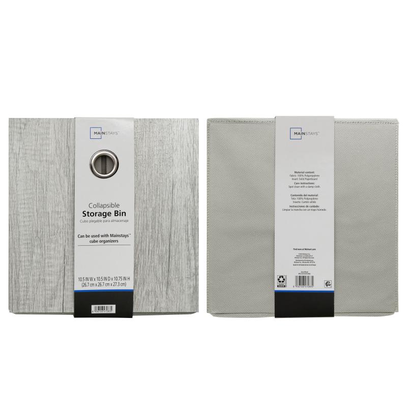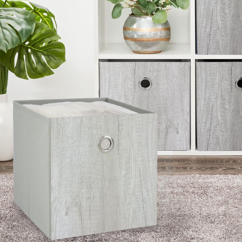 Mainstays Collapsible Fabric Cube Storage Bin, Grey Wood Grain
