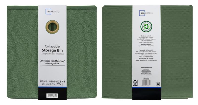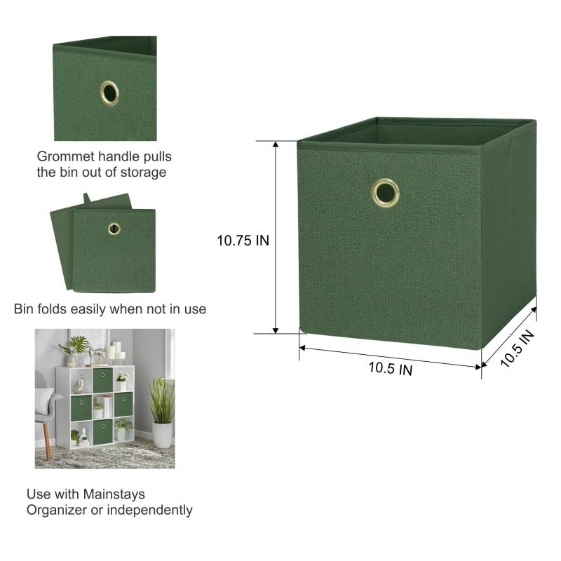 Mainstays Collapsible Fabric Cube Storage Bin, Green Boucle
