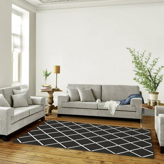 (4 pack) Mainstays Diamond Indoor Area Rug, Charcoal, 59" x 78" for Living Room