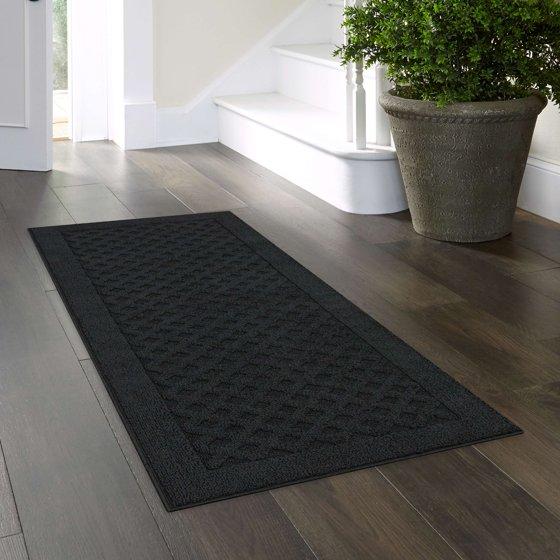 Mainstays Dylan Solid Diamond Olefin Black Indoor Runner Rug, 1'9"x5'