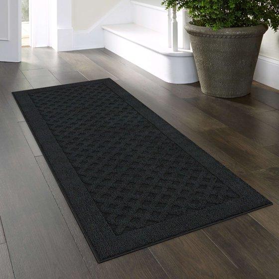 Mainstays Dylan Solid Diamond Olefin Black Indoor Runner Rug, 2'x6'