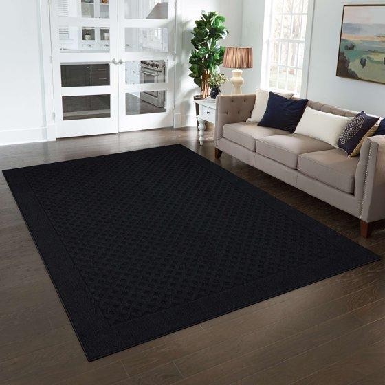 Mainstays Dylan Solid Diamond Olefin Black Indoor Area Rug, 7' x 10'