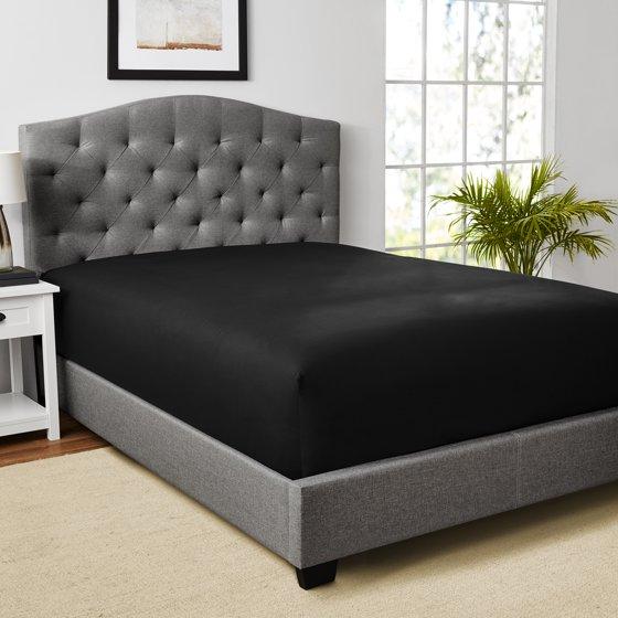 Mainstays Easy Care 300 Count Solid Rich-Black CVC Cotton Blend Fitted Sheet, Twin / Twin XL (Adult)