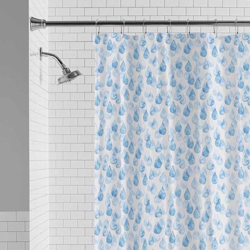 Mainstays Eco-friendly Water Drops Waterproof Recycled PEVA Shower Curtain Set with 12 Hooks, Blue