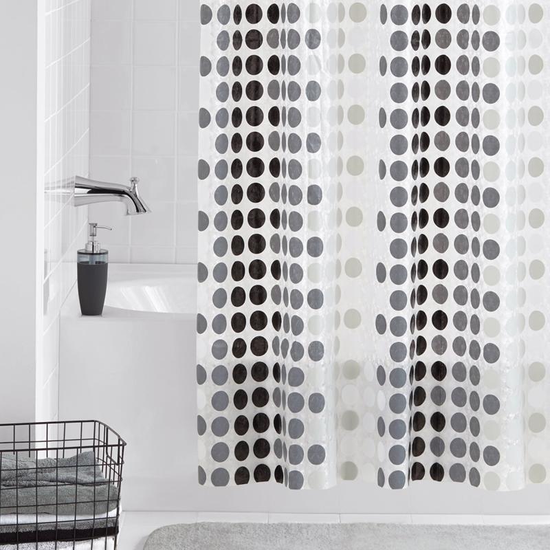 - Curtain has a decorative dot design and is waterproof, chloride-free and odor-free