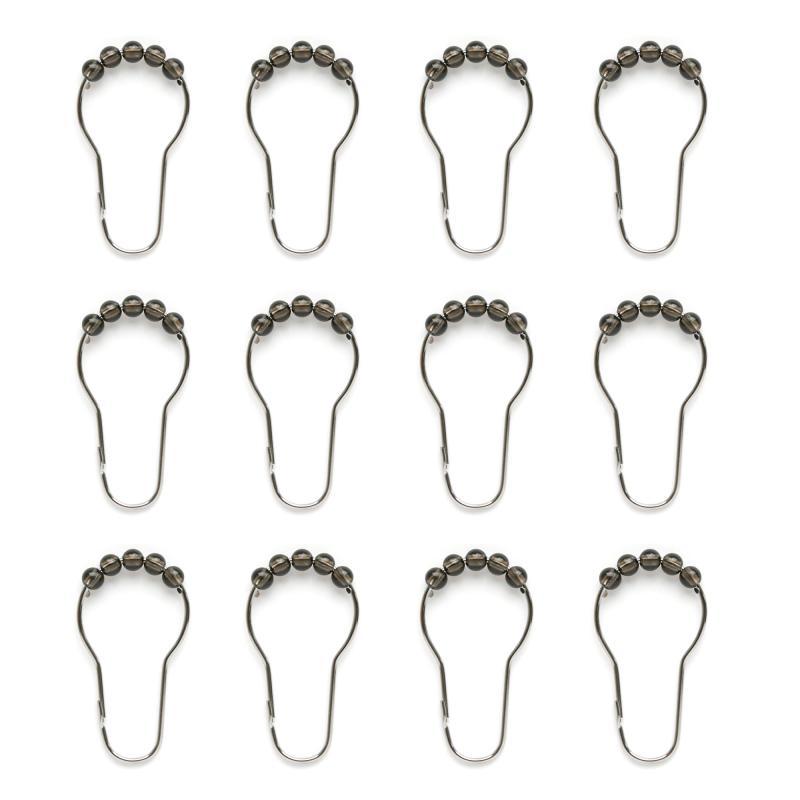- 13-piece set includes shower curtain (70 in. x 72 in., sized to fit most standard tubs and showers) and 12 rollerball shower hooks