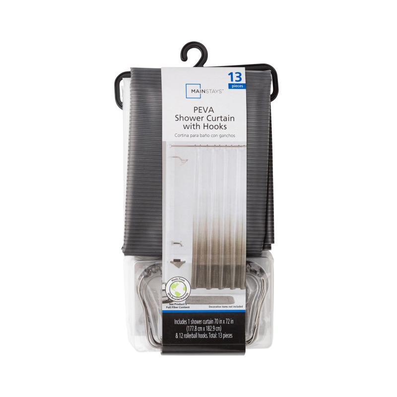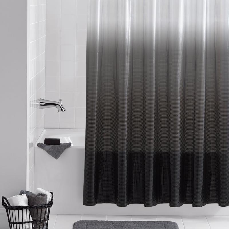 Mainstays Eco-friendly Waterproof Recycled PEVA Dip Dye Black Ombre Shower Curtain Set with Hooks - 12 Hooks
