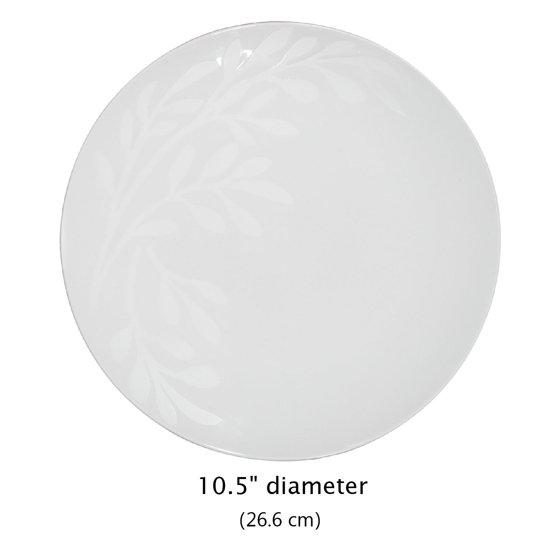 - Set Includes: Four 6" bowls, four 10.5" Dinner Plates, four 8" salad plates.