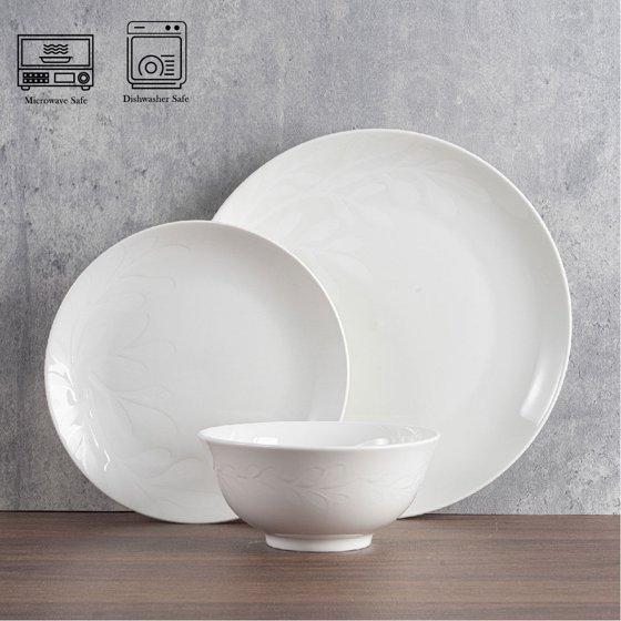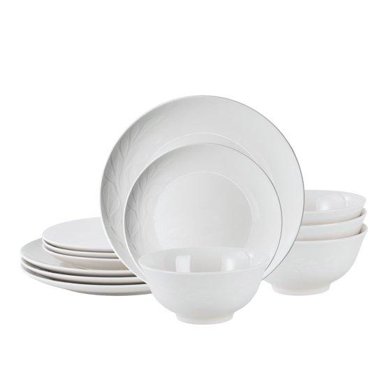 - Mainstays Emelie 12-Piece Stoneware Dinnerware Set White