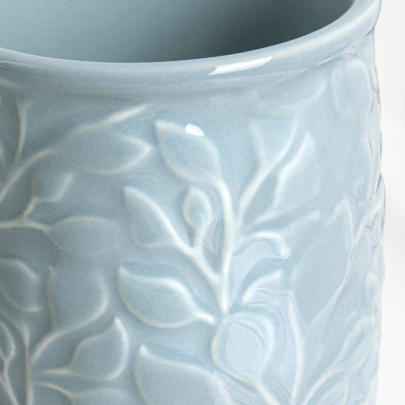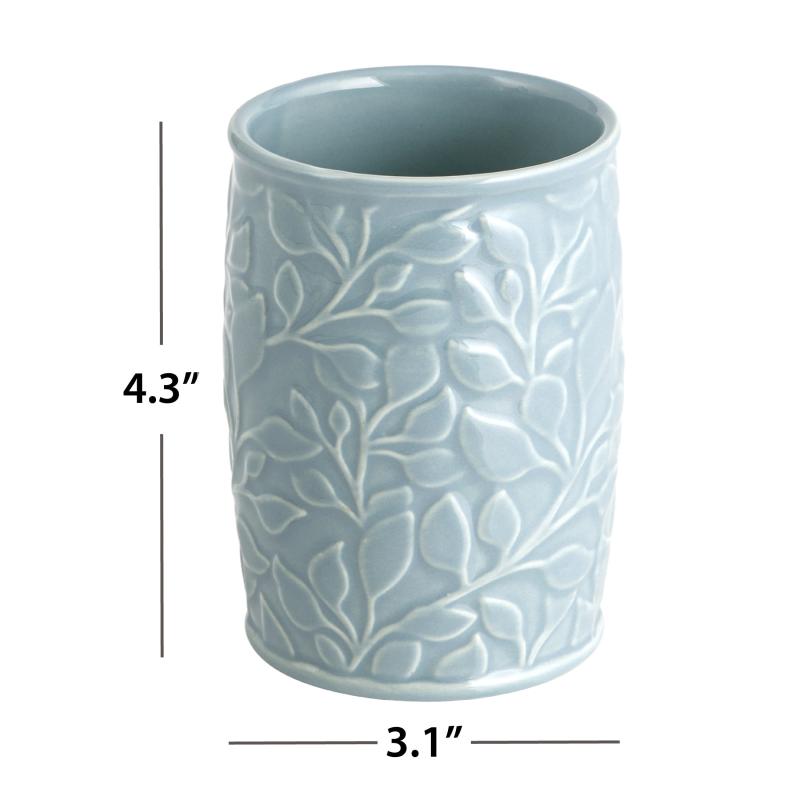 - Refreshing nature-inspired toothbrush holder embellished with cascading leafy floral vines in blue