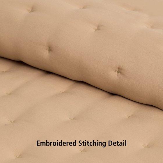 Mainstays Full/Queen Comforter Set, Super Soft & Embroidered, 3-Piece, Fatigue Tan
