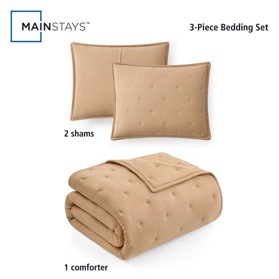 - Mainstays Full/Queen Comforter Set, All-Season, 3-Piece, Fatigue Tan