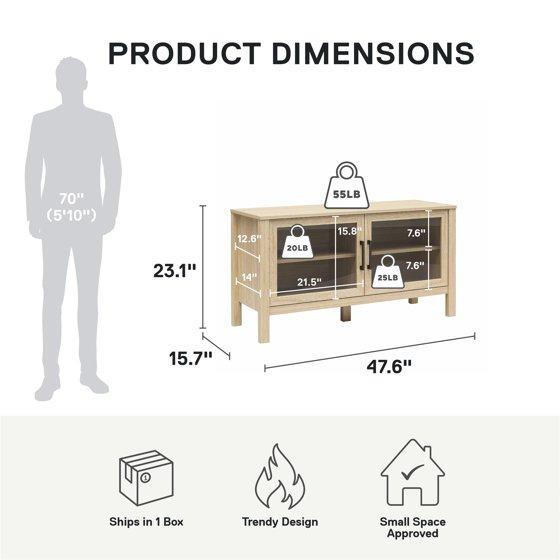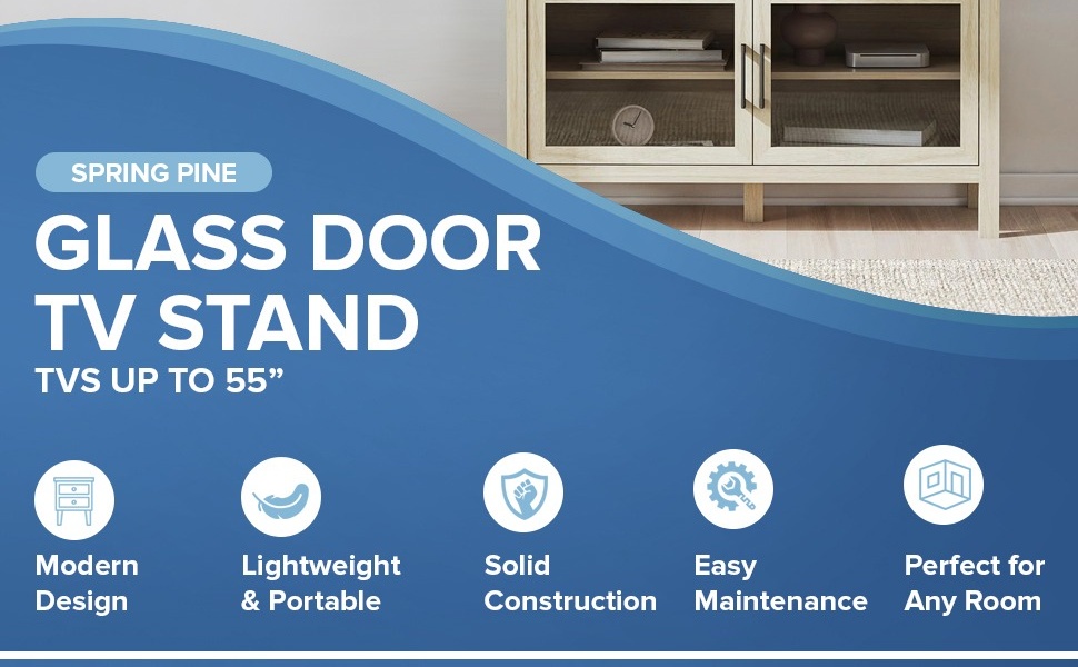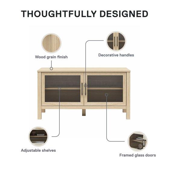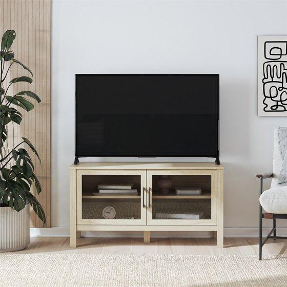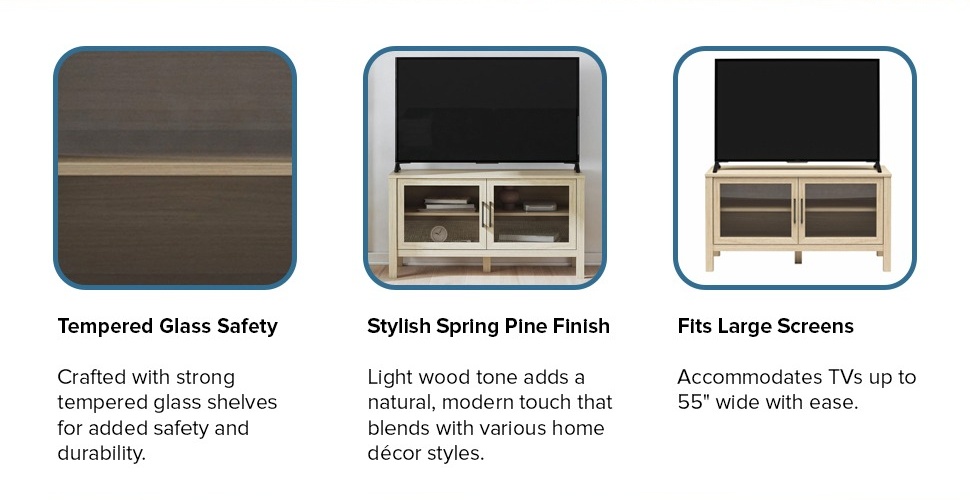 Mainstays Glass Door TV Stand for TVs up to 55", Spring Pine