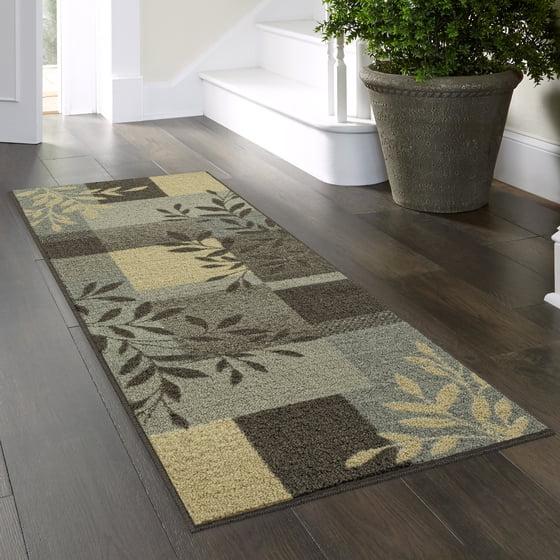 Instantly update your home with the Mainstays Leaf Block Value Loop Print Area Rug or Runner. This indoor rug collection features a modern twist to a traditional block pattern with an accented leaf design. With 5 different colorways available including Multi-color, gray, blue, aqua and rust, it’s easy to fit any existing decor. The Mainstays Leaf Block Rug Collection is made with stain and fade resistant polyester yarn. All sizes of this style have non-slip latex backing to help keep it in place on your floors. The Mainstays Leaf Block Rug features a durable construction and stylish design at an affordable price, perfect for any room of your home; bedrooms, living room, dining room, hallway, or home office.