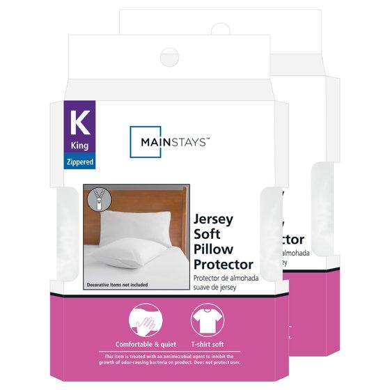 Mainstays Jersey Soft Bed Pillow Cover Protector, King- Durable Zippered Closure (2 Count)